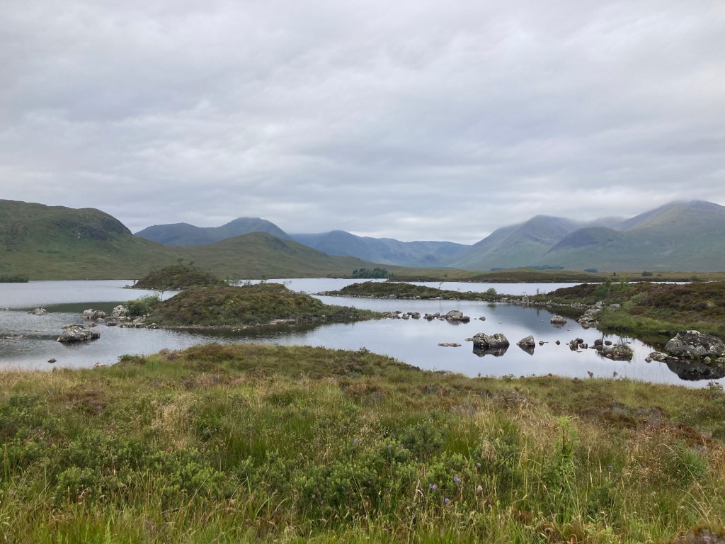 We left Tyndrum after a rather bizarre stay in a rather bizarre location and cycled over Rannoch Moor to a view point some 11 miles out. Already the countryside was opening up and already the midges were swarming at those lucky human specimens they had specially selected. The view point across the valley was magnificent, as indeed were many of the other views up and coming. Our target for the morning was Glencoe.