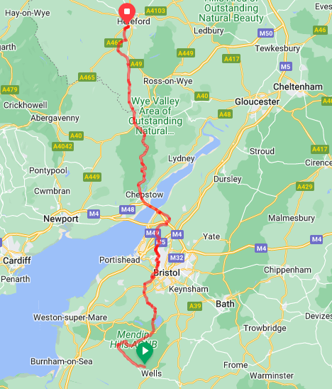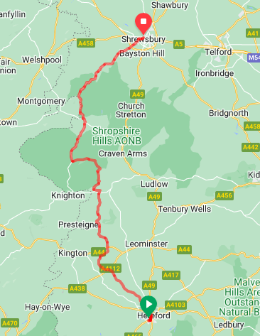Hereford to Shrewsbury 110k , 1111m of ascent