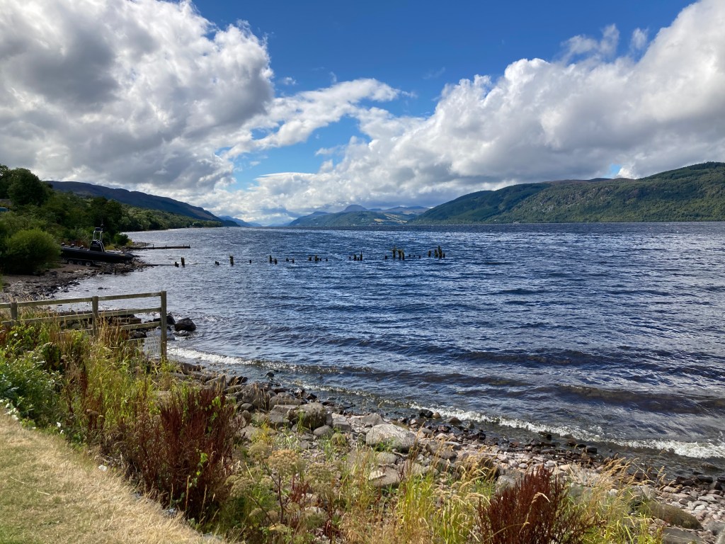 Given conditions we hung around briefly and then headed down to the promised coffee and cake stop some 16k on. It was whilst heading down the very steep gradients that appeared to run on for miles I first noticed a grating nose coming from the bike. Given the gradients I did a quick check and having reassured myself it was not either the headset, bearings, wheels, crank consulted at the bottom with our learned tour leader Mick. Free hub was his suggestion, (I was not overly familiar with this I confess), but looking it up I now know it is an “extension of the right-hand side of the rear wheel’s hub which contains a system that engages with the wheel when you’re pedalling, to propel you forward, and which disengages when you stop pedalling” so the wheel continues to turn without the gears and pedals turning. Hence I had a brutal noise when I was free wheeling but not when pedalling. Upshot was I “borrowed ” a spare rear wheel and super Pete and Mick changed the cassette and sorted the bike out for me in les time than it would take an F1 team to change a tyre! Lunch was some way down the Loch at The Dores Inn, which like much around appeared to specialise in Nessie and great views. After eating , admiring the view and buying the obligatory fridge magnet of Nessie we moved on.
