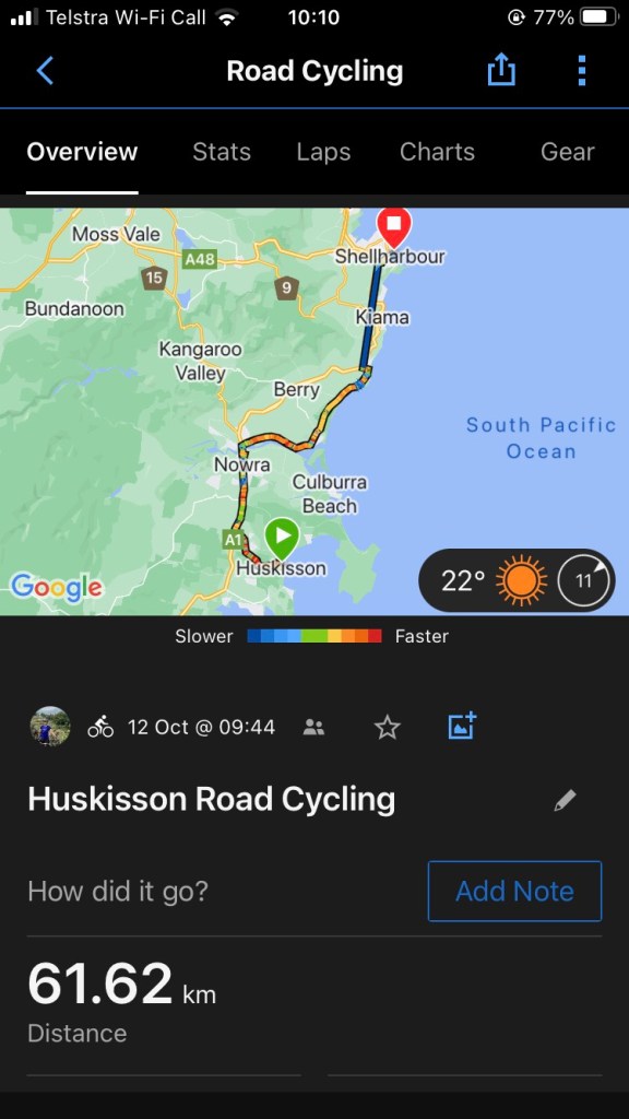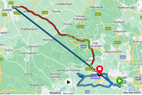 Given the state of the world and the arrival of Covid it was fortuitous in a weird kind of way that the 1st outing resulted in too close an encounter with a dog at the end of what had been a fun decent ride, (after I insisted on stopping for coffee en route home), resulting in my 1st Ambulance ride (where I was the patient) to the John Radcliffe in Oxford. As a consequence of both the dog incident and Covid, our 2nd training session was many, many months later… I love this Garmin map as for me, it marks a starting point in the journey which required much mental and physical effort. A bit like starting subterranean before getting back to ground level and then moving on upwards.