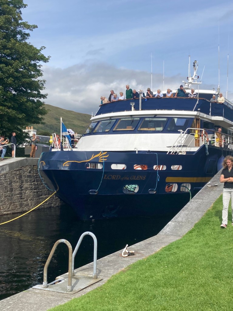 Neptunes Staircase for us marked the start of the Caledonian Canal. Built by Thomas Telford between 1803 and 1822, it is the longest staircase lock in Britain, now hydraulic but originally hand powered , which must have taken some time. We were with 3 of our Australian friends for this 10 mile stint, but for all of us it was amazing to watch a very large tourist boat squeeze its way carefully through the lock.