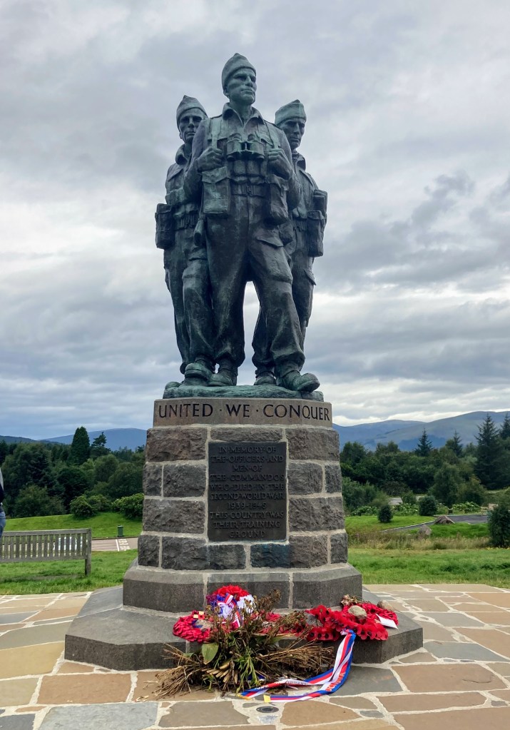 After 10 miles we turned off to rejoin the original cycle route and after a cheeky couple of rather steep but relatively short non-gamin hills, made it to the afternoon tea stop at The Commando Memorial at Lochaber, which sits near a very moving memorial garden which I had visited once previously when in the area. The memorial itself is dedicated to the men of the original British Commando Forces killed during World War II. Situated around a mile from Spean Bridge, it overlooks the training areas of the Commando Training Depot (est in 1942) at Achnacarry Castle. The tea stop was very welcome and whilst there we encountered 3 cyclists who were doing the same route but in reverse…after a quick exchange we headed off, this time taking the road into Fort Augustus.