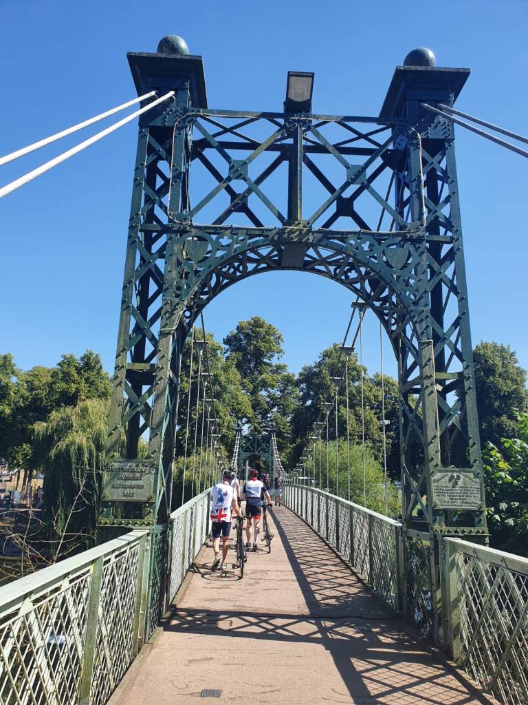 Heading out of gorge our direction of travel was Bristol. Having never been here before the parks around Clifton and the general ambience of the place was fantastic – really good to cycle through. We had cleared the Clifton suspension bridge en route and were heading in the direction of the older Severn bridge. What a fantastic experience cycling over this, with great views up and down the severn estuary. However, we were slightly confused to meet a motor cyclist who had chosen ride his bike over on the cycling lane wearing only his boxer shorts, shortly followed by someone on a scooter.