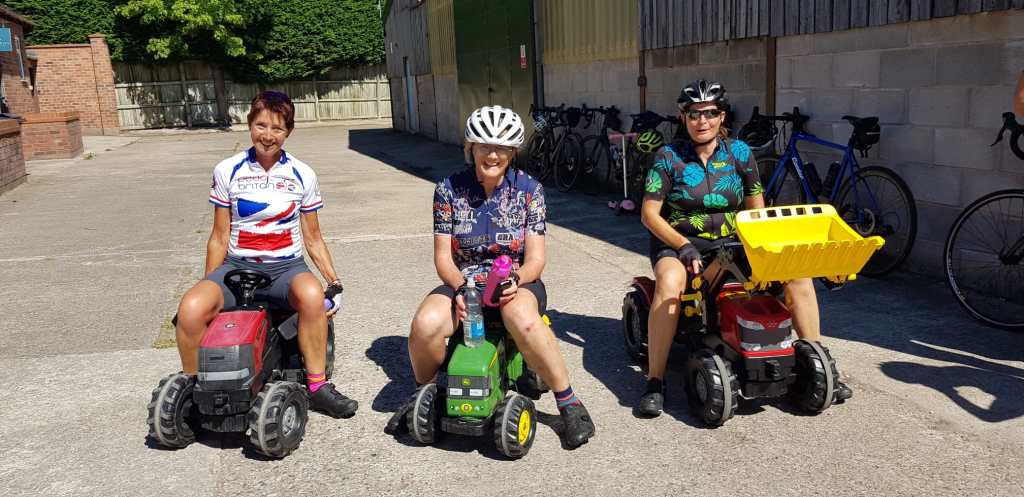 Today was about trains, speed and learnings. This morning after “brew break” we hopped on the back of a train being “driven” by one of the boys. End result 14 of us were neatly snaking round some relatively flat lanes at a decent speed and whilst an amazing experience, on the roads we were travelling on the was way too many for safety and we were keen not to upset too many working farmers and locals. Just as we thought we would drop off, one of the boys touched a brake. Fortunately no pile up but definitely time for the girls to do their own thing. We then spent the remainder of the day ie up to lunch and all afternoon cycling with our 3 Aussie friends, Leonie, Liz and Karen, resulting in much fun, a few near misses (for which we blame garmin) but decent speeds over gently undulating territory, allowing us to make something of a day where not too much was going on.