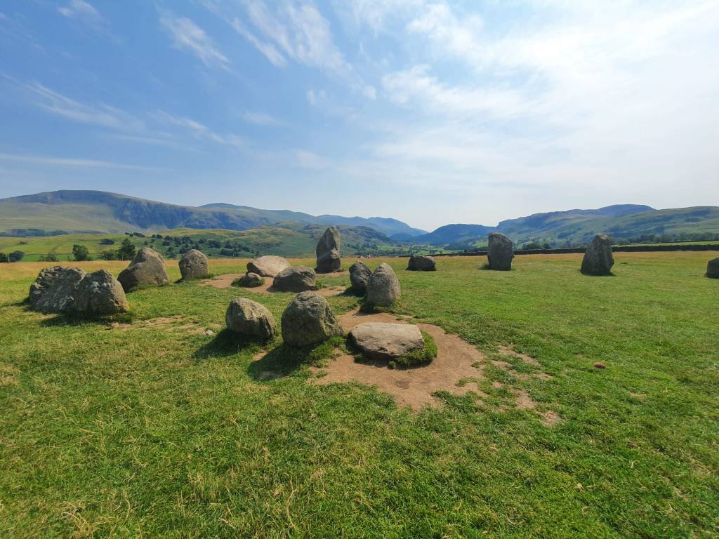 There is no doubt the views were magnificent – the gradients on the climbs all varied, wish certain areas up at 14+%, whilst other areas were simply 3 -5%, however each climb was over a decent distance, allowing time to set into rhythm and focus. Both Myra and I found ourselves doing exactly what we had done previously in Scotland on the North Coast 500 , namely counting strokes or revolutions and focusing on either leg on a push / pull then linking this to breathing to really enable us to hold together and to get up the ascents. some 7 or 8 miles out from lunch the route passed by Castlerigg Stone Circle, which we had dutifully promised to Pete our guide we would stop and admire. It did not disappoint, resembling the stone cures from Orkney as well as our own Stonehenge!