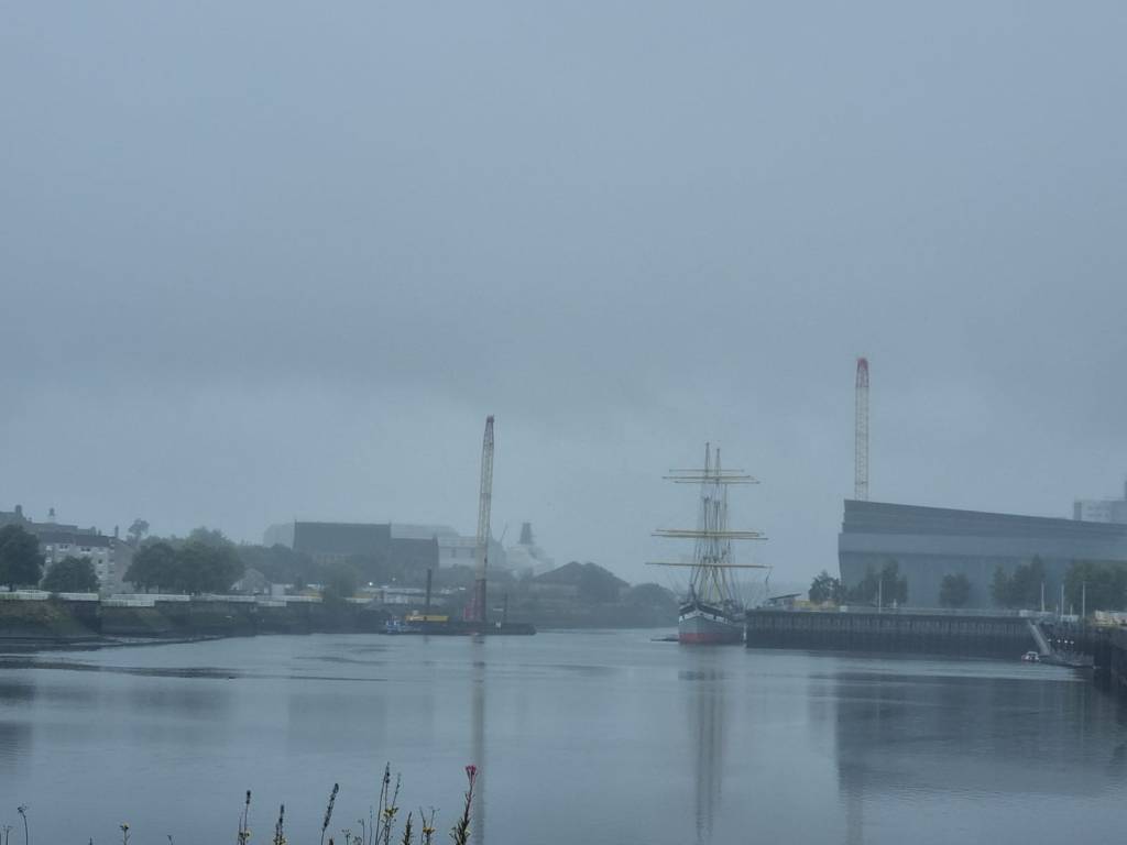 The cycle path to Glasgow was of good quality although had to be used in single file for much of the way. It was also well signed which helped immensely as we passed through the suburbs in heavy rain. Cycling in full waterproofs brought back (happy) memories of cycling the North Coast 500 some 4 years previous. Taking the route out of Glasgow and along the Clyde the amount of regeneration is very impressive and there are some great buildings to be viewed even in the mist and fog. As we continued out of town past the old shipbuilding yards we were moved onto an old rail track which afforded great views of the industrial units the have now replaced the ships although some fantastic pieces of architecture still remain…..The whole vibe of the town is very modern and certainly cyclists and pedestrians are well provided for with safe routes and clear crossings.