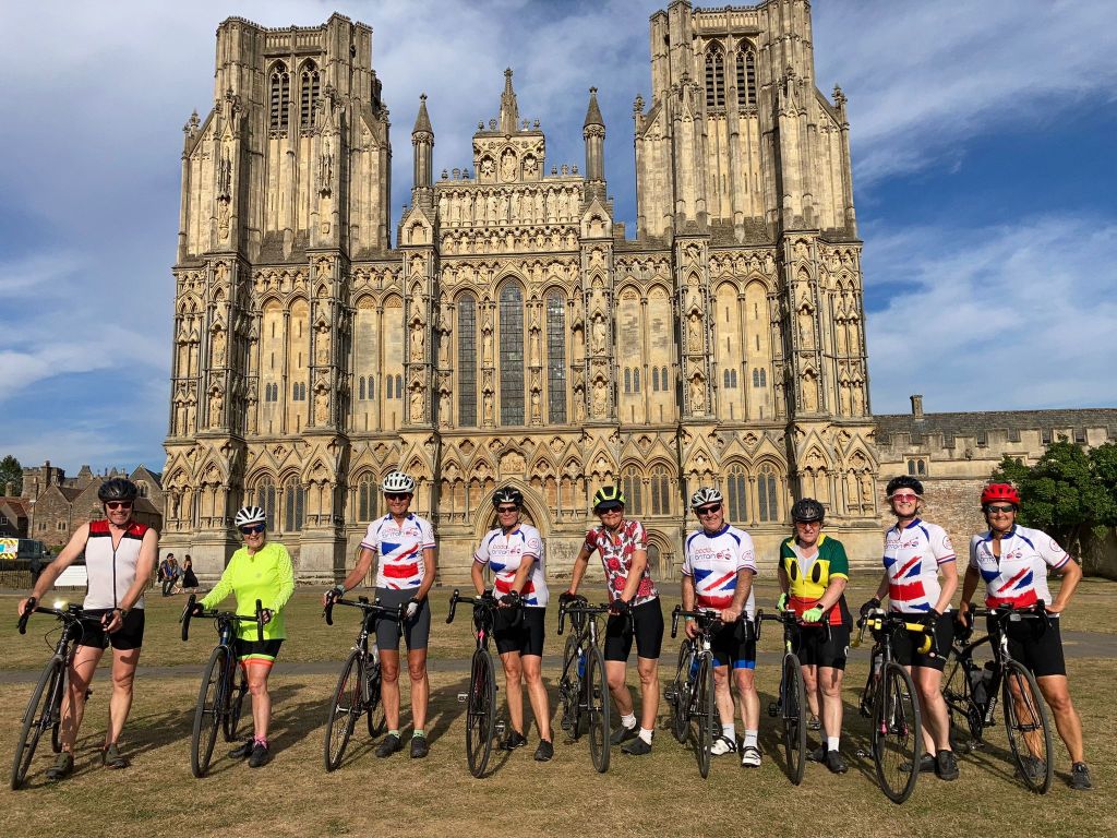 Getting out of Glastonbury and onto Wells our final destination was less than pleasant. A busy dual carriageway leading down to a very busy roundabout leading onto an equally busy A road across which we had to make a right turn. It was after the turn off we encountered our last hill – and at a time when everyone was feeling the pain. 100k is fine, 120k is fine but there was a general consensus that 135 in heat was pushing it!