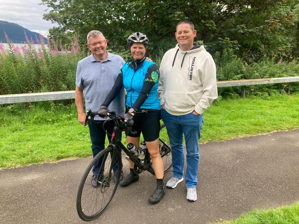 We rode along the western side of the Loch (via lunch). It was another brutal day for punctures – although amazingly both Myra and I got away without any, whereas the boys seemed to be collecting them! Whilst having lunch Myra had been contacted by her brother and father who had planned to come drive across from Saltcoats, we arranged to meet them part way up the Lock for a 10 minute chat.