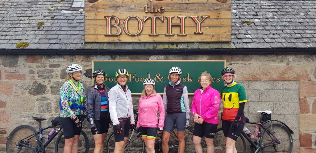 Before we set off for what we all knew was going to be tough morning, we gathered the ladies together for a swift photo opportunity in front of The Bothy, the local hostelry which sadly we hd not had time to frequent.