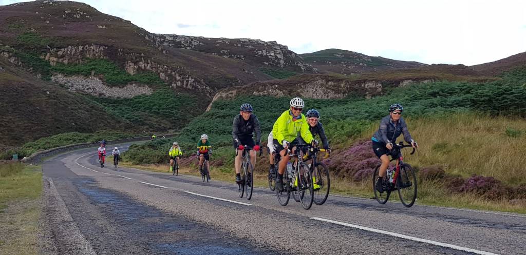 Today is reputedly one of the top 3 rides in the uk. We left Invergordon and began to climb up into beautiful countryside. A relatively long day on tired legs, it was very much about getting heads down and finding some headspace and motivation to push on through the first 22 miles to the Brew Stop. The temperature was lower than it had been previously and over a cup of tea, given conditions, it seemed sensible to put back on our overshoes. The scenery was beautiful but as we climbed the weather became more brutal as we continued by the Kyle of Sutherland, through the Shin Forrest to Lairg which sits at the the southern end of Loch Shin. The ride then became increasingly spectacular as we wound up through woods and high moorland to the Crank Inn for lunch. Very much like the Tan Hill Inn (for those who have been there or completed the Pennine Way, it was extremely remote and majestic.
