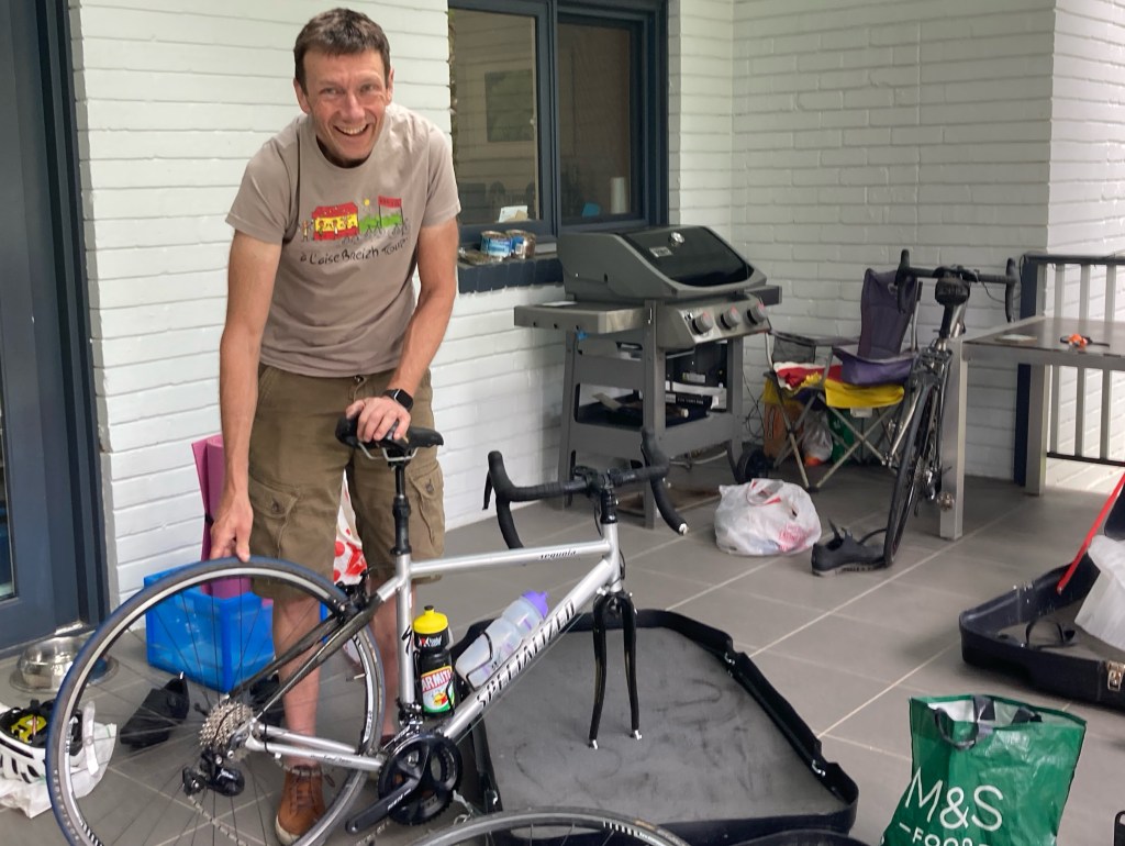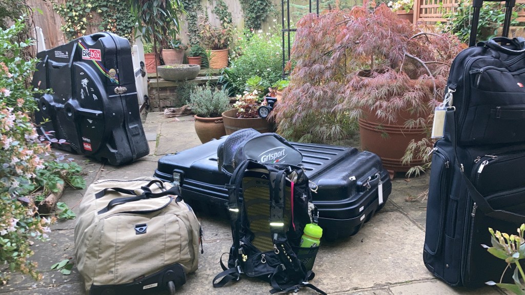 Slightly nervous this evening having delivered my bike to Myra’s ready to go in the van. 2 spare inner tubes, 2 carefully selected water bottles, bike has been serviced, my set up has been measured & angles adjusted, I have new seat, brake pads, (note to self, dont brake to hard), and chain. Rucksack packed & labelled and all that remains is for me to determine which day sack I will take & wonder if I really do have everything, – my rucksack contents have been carefully planned for days and items moved and reprioritised, then all classified, rolled up & put into their own plastic bag dependant upon purpose. I haven’t included a long sleeve for Scotland and the long range looks around 12 degrees – arm warmers, gilet, vest and thin waterproof plus full on waterproof if I need it will have to do…..I am being picked up at 7.15 to head to Reading station for the 8.30 to Penzance… – glass of Prosecco then tonight to ease the nerves…….