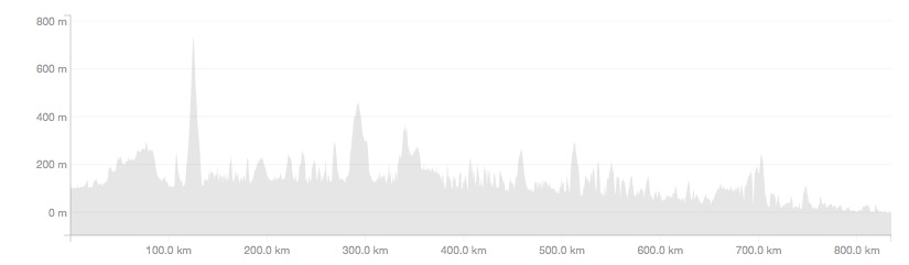 Today was always billed as a big day – it did not disappoint. 10 climbs throughout with the last 2 being an order of magnitude bigger and longer than all others completed to date but the upside being that most of the last 25k were downhill.
