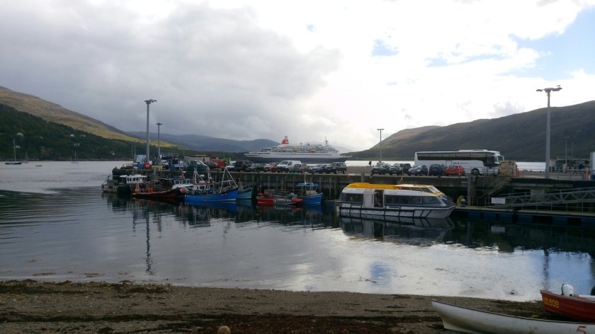 We arrived in Oban the same time as the rain…which at least dissuaded us from stopping in the high street, instead choosing to head straight to the ferry terminal, purchase our ticket and have a much needed snack in the very fine locally sourced and run snack bar that is at the far end of the ferry building.