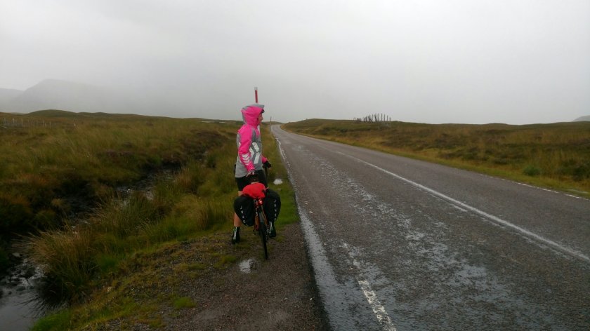 After such an exciting week that had been so tough yet satisfying today was always going to be a sad one given it was our last. Equally sadly we had rain forecast and as we cycled out of town with waterproofs on we were thinking that we were going to be arriving in Inverness in the same conditions we had left the town 8 days previous and hoping it wouldnt bring the same consequences ie a slide down the road!